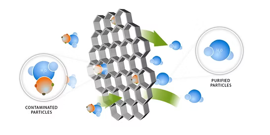 The mineral inside the Ecoroq filter has ability to absorb and desorb moisture. After absorbing excess moisture, purified moisture particles are then released back into the environment.